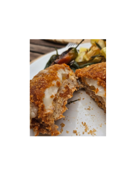 Cachopo vegano relleno de chorizo bio gallego, pimientos de Padrón y mozzarella fresca Bio