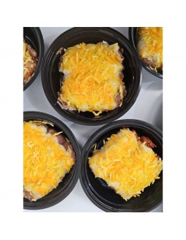 Deliciosos canelones rellenos de jugosa salsa boloñesa de proteína de guisante, cocinada a fuego lento al estilo tradicional italiano. Gratinada con bechamel vegetal y preparado vegetal estilo mozzarela y queso cheddar.