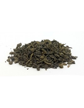 Té verde de hoja enrollada, también llamado Perla Verde. De sabor suave y ligeramente amargo.