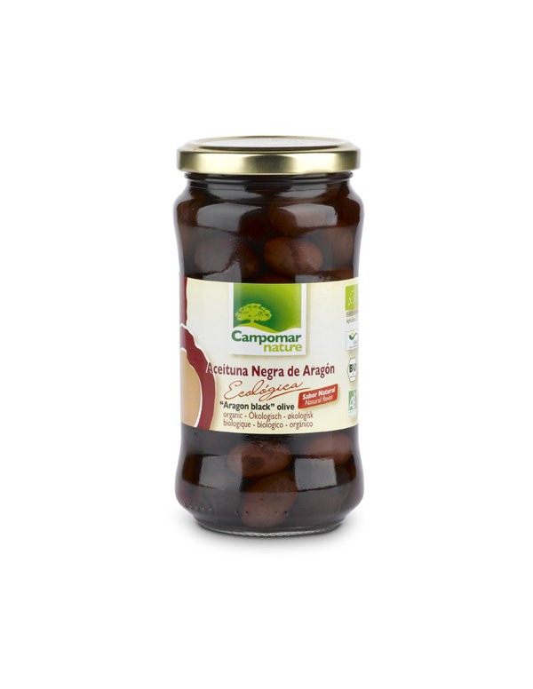 Aceituna negra procedente de la región de Aragón, de tamaño medio y textura tierna, no cocida ni sometida a ningún proceso artificial de oxidación, consiguen su color negro por maduración en el árbol. Tienen sabor a auténtica aceituna negra natural, sin aliño, con un sabor ligeramente dulce, excelente, muy oleoso, con final suavemente picante. Un verdadero placer que le hará descubrir el auténtico sabor de las aceitunas negras naturales.