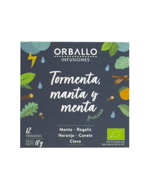 INFUSION TORMENTA MANTA Y MENTA BIO 12 piramides 18 gr. ORBALLO
