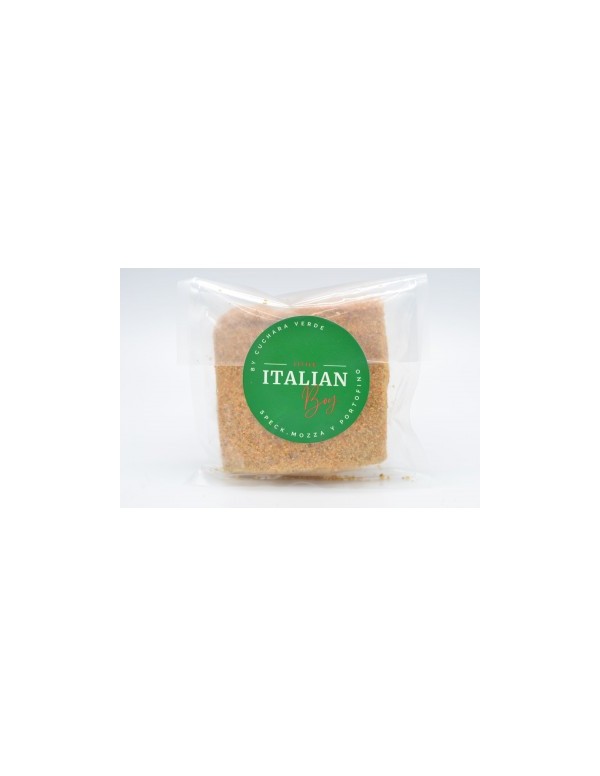 Proteina de trigo (gluten)" harina de garbanzo, shoyu (soja)" preparado vegetal estilo MOZZARELLA (agua, almidones modificados (NO genéticamente), grasa de coco, calcio, aromas, extracto aceite de oliva bela caroteno, goma garrofin, fibra citrica, fosfato cálcico, ácido cítrico y absorbico, carragenato, colorante natural) SPECK reparado vegetal estilo jamón ahumado: (gluten", semala de trigo duro (gluten), aceite de oliva extra virgen, Taman (soja).. aroma natural, proteina de guisante", levadura madre, shochu (agua, arroz) aceite de coco, semillas de soja tostada, mix de especias y hierbas aromáticas) lino, pan rallado de trigo (gluten) salsa PORTOFINO (tomate, cebolla, aceite de oliva extra virgen". albahaca,, ajo), pimentón ahumado", pimienta negra", pimentón dulce, aromas, aroma de humo, levadura nutricional, sal marina.