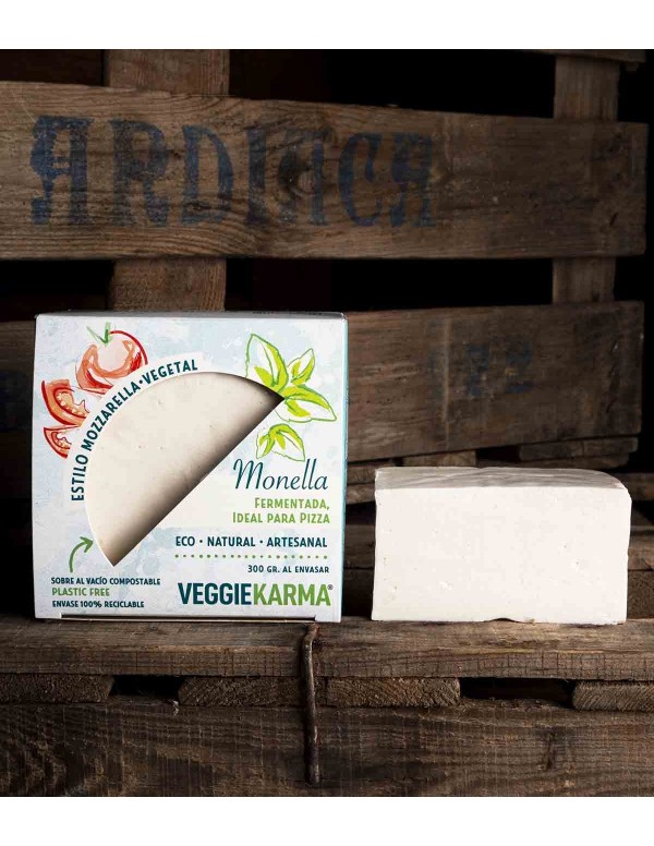 Esta mozzarella vegana "Monella" al contacto con el calor logra fundirse, expandiendo así, toda su energía explosiva a los ingredientes que la rodean.