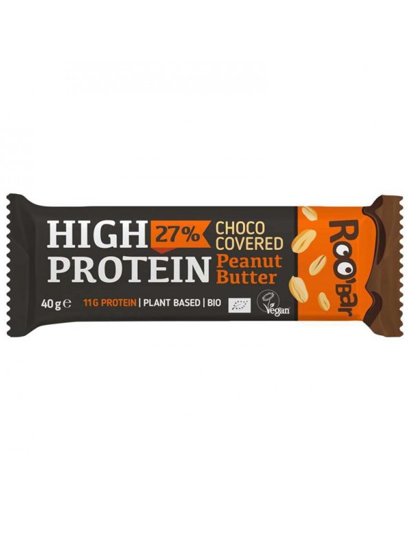 Alto contenido de proteína de origen vegetal. – Bañado en chocolate vegano irresistible. – Con cacahuetes crujientes. – 100% orgánico – Ecológico. – Vegano.