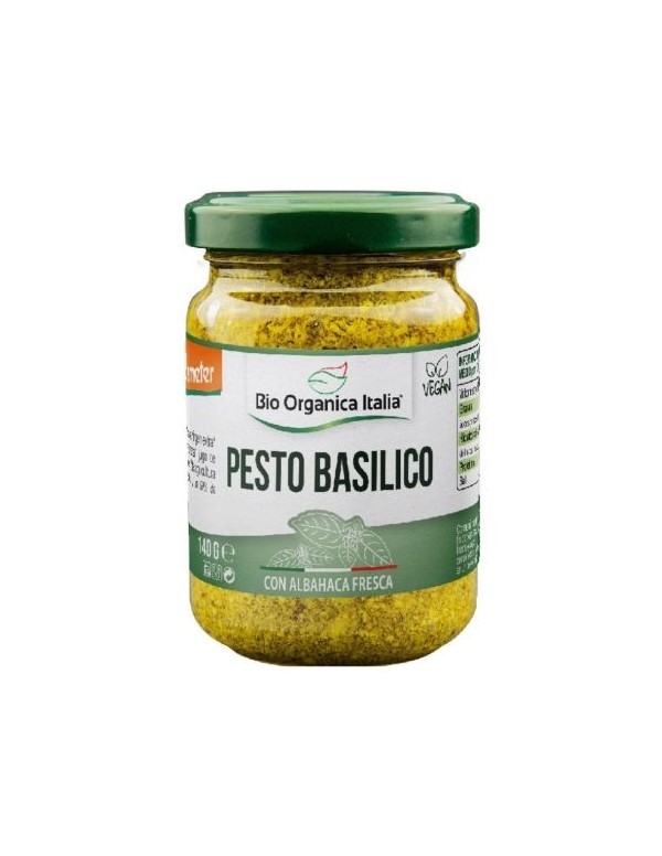 Pesto Basílico con Albahaca 140gr Bio Organica Italia es una versión especial de pesto que armoniza los ingredientes de forma equilibrada sin queso, dejando intacto el sabor tradicional del Pesto. El sabor es particularmente equilibrado e intenso.