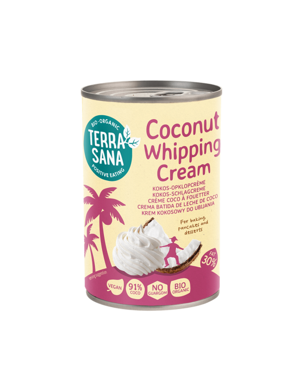 Crema de coco vegetal que puedes montar con la densidad que quieras para decorar tus tartas veganas como más te guste. Con la friolera de un 91% de coco. En otras palabras, prácticamente todo es coco. Con un contenido graso del 30%, esta crema de coco es tan cremosa que ya no querrás nata montada. Para esta crema de coco para montar (o nata montada de coco vegana), tan solo necesitas esta bonita lata. Deliciosamente cremosa, deliciosamente vegana. Sin el emulgente goma guar. Aunque sí con el aglutinante natural tapioca, que hace que esta crema de coco quede extra firme.