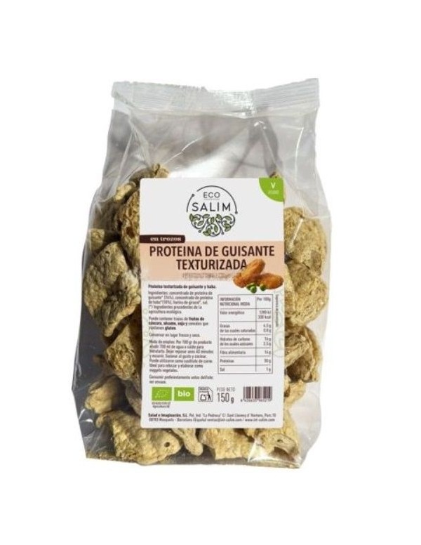 Concentrado de proteína de guisante* (74%), concentrado de proteína de haba (18%), harina de girasol*, sal. * Ingredientes procedentes de la agricultura ecológica. Puede contener trazas de frutos de cáscara, sésamo, soja y cereales que contienes gluten.