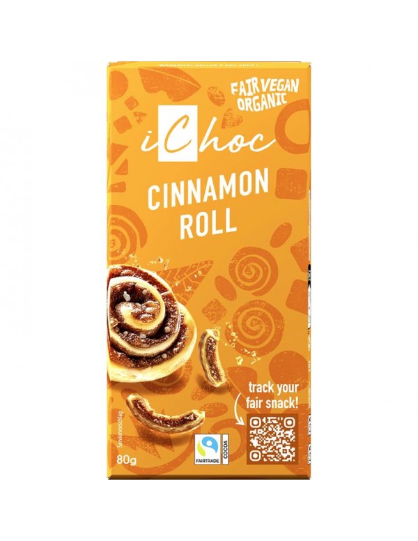 Esta deliciosa variante de iChoc combina el mejor chocolate con el popular rollo de canela de hojaldre. La canela de Ceilán de alta calidad se combina con el preciado cacao de sabor fino. Los trocitos de oblea y el crujiente azúcar granulado convierten este chocolate en una experiencia de sabor muy especial.