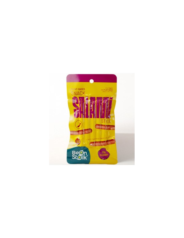 Disfruta de los Snacks Estilo Salami de BeanStalk, una opción deliciosa y 100% vegetal que ofrece todo el sabor y la textura del salami tradicional, pero en un formato más saludable y sostenible. Ideales para llevar contigo a cualquier parte, estos snacks están hechos a base de proteínas vegetales, ofreciendo un aporte nutricional equilibrado y rico en proteínas. Perfectos para picar entre horas o añadir a tus platos favoritos, los Snacks Estilo Salami te permiten disfrutar del sabor clásico sin comprometer tus valores. ¡Llévalos contigo y disfruta de un bocado lleno de sabor, libre de ingredientes animales!