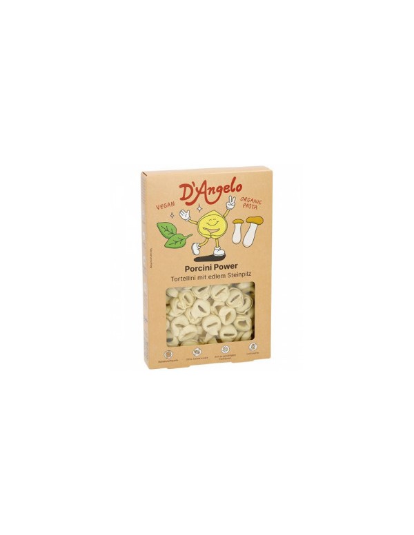 Pasta: sémola de TRIGO DURO *, agua. Relleno (26%): migas de pan * (harina de TRIGO *, excepción *), setas * (30%), copos de patata *, cebolla *, aceite de girasol *, sal marina, emulsionante: lecitina de soja *, ajo *, pimienta *.