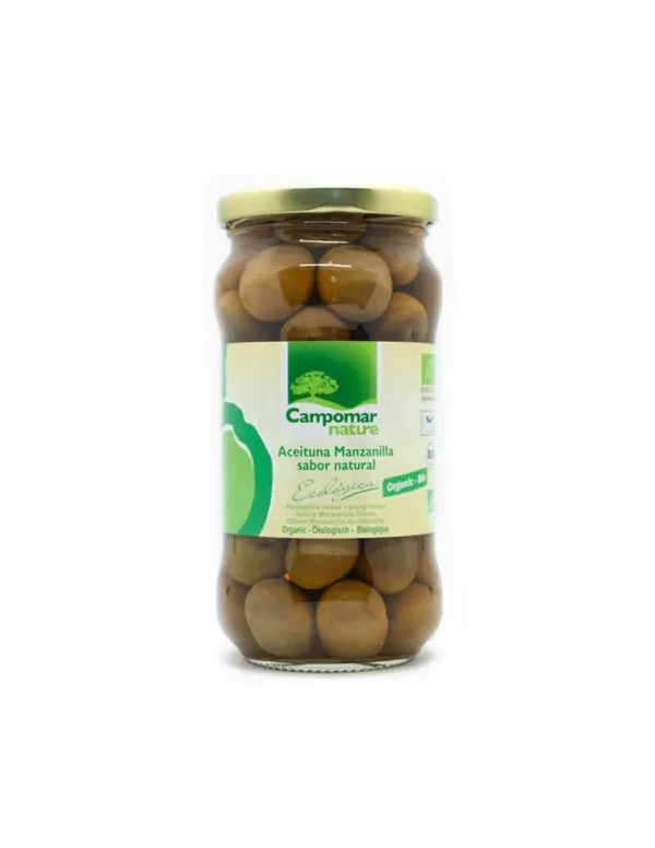 La aceituna Manzanilla ecológica es una aceituna de textura equilibrada, firme y a la vez tierna, no cocida, con sabor a auténtica aceituna natural, con final ligeramente amargo.