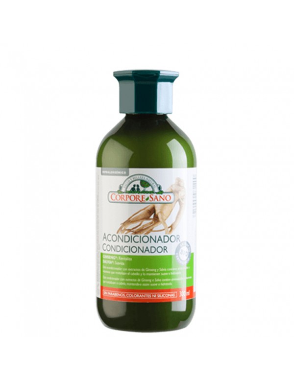El Acondicionador de Ginseng de Corpore Sano actúa sobre la capa externa del cabello: hidrata, suaviza y da brillo a la fibra capilar. El uso del acondicionador facilita el peinado y deja el cabello suave y brillante tras el lavado con champú. Además, con el acondicionador lo protegemos de factores externos que pueden causar daño al cabello y lo mantenemos en condiciones óptimas.