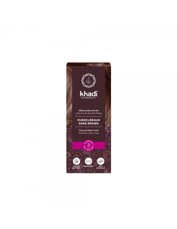 Tinte natural Khadi que proporcionan un tono castaño oscuro natural al cabello.