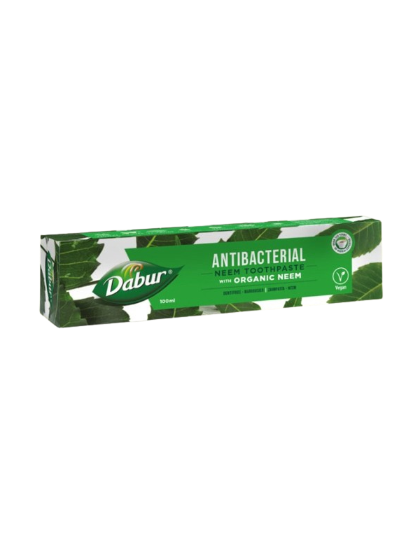 Dentifrico de neem, Dabur Herbal, contiene extracto de hojas de Neem (un elemento de limpieza natural) combinado con hierbas aromáticas basadas en Ayúrveda el método tradicional indio de asistencia sanitaria que permite una higiene bucal completa y segura. Posee cualidades antibacteriales que combaten problemas de las encías. Limpia y desinfecta los dientes, las encías y la boca y evita el mal aliento.