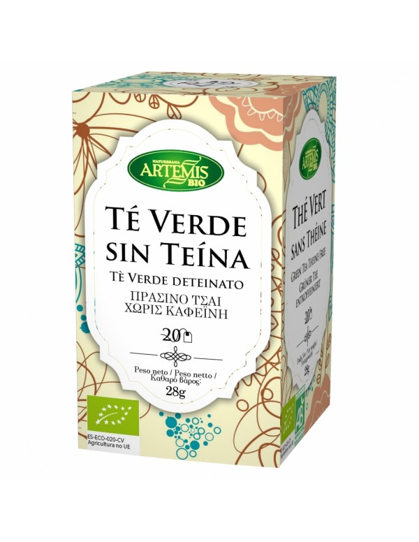 El Te Verde sin Teina Bio de Artemis es un te medicinal el cual es ideal por su gran aporte de vitaminas y minerales, además de ser libre de teina, por lo que puede ser consumido por mujeres embarazadas y niños pequeños, así pues es ideal para tomar a cualquier hora del día, en especial a la hora de la merienda.