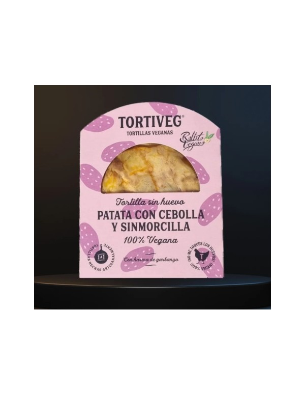 Deliciosa tortilla vegana de patatas, cebolla y "sin morcilla".